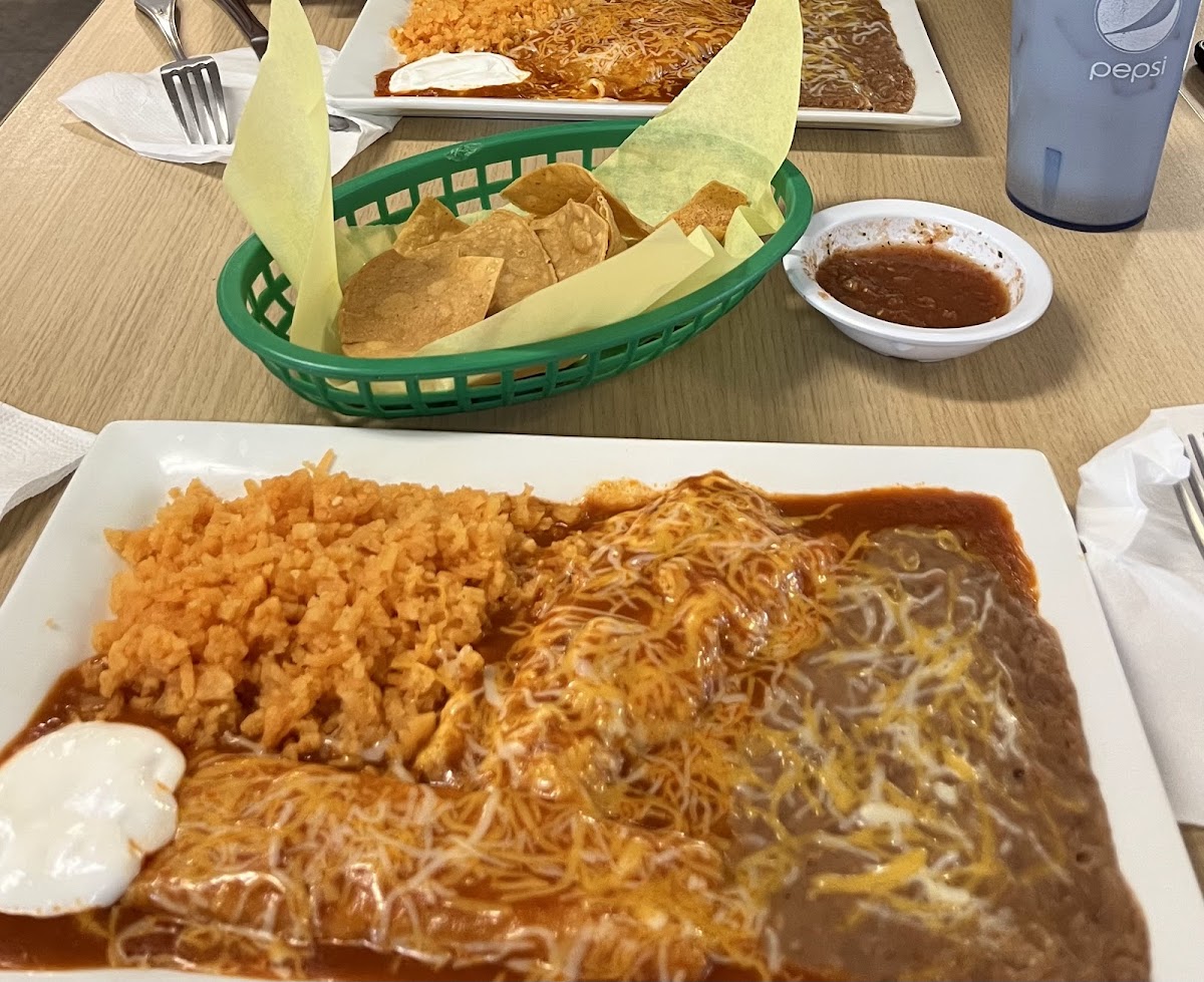 This is a charming little Mexican restaurant a little bit off the highway, and definitely worth the detour. The chips and salsa were excellent, and likely made there. I loved the beef enchiladas with the good sauce and shredded beef. Rice snd beans were as lid good. Lunch is not a big meal which suited me just fine. We also received great service.